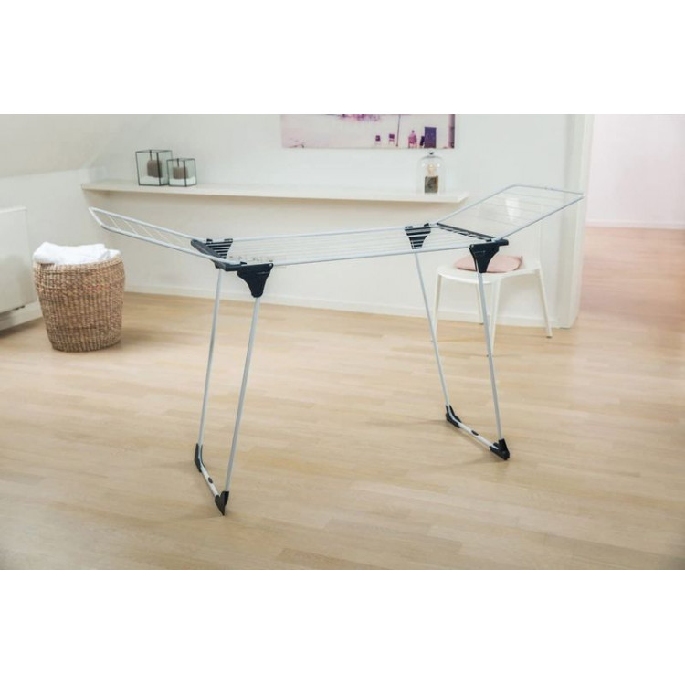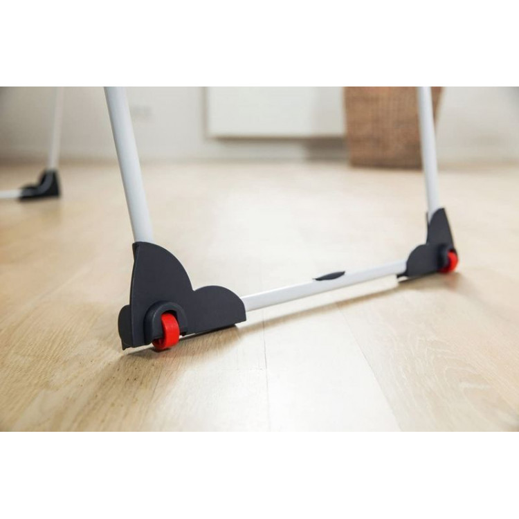 Сушарка для білизни підлогова Gimi Rialto (157182) - компактна сушарка з великою робочою поверхнею 18 метрів. Каркас моделі Gimi Rialto (157182) виконаний на зразок Free Space, що дозволяє розташувати білизну під час сушіння максимально вертикально по всій висоті при цьому виключений контакт білизни безпосередньо з опорними ніжками сушарки. Сталеві елементи конструкції мають антикорозійне покриття. Одна з опорних стійок обладнана роликовим механізмом, завдяки якому переміщення всієї конструкції житловим приміщенням стало надзвичайно легким і максимально безпечним по відношенню до поверхні підлоги. Надійна та практична, виготовленаз екологічно чистих матеріалів, сушарка для білизни підлогова Gimi Rialto (157182) стане надійним помічником, як у приватному будинку, так і в квартирі.