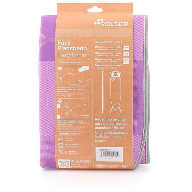 Чохол для прасувальної дошки Rolser Muleton Malva 130 x 48 см (FUR003-2061) – це практичне та функціональне рішення для прасування. Він підійде для прасувальних дощок розміром 120 x 38 см. М’яка поверхня полегшує прасування та підвищує комфорт. Склад тканини (100% бавовна), міцний шнур для регульовання, в чохлі, а також фіксуючий елемент, що забезпечує зручне регулювання чохла буде запобігати утворення складок. Основа з бавовняного флісу в поєднанні з верхньою тканиною забезпечують зручне ковзання праски, що гарантує легке прасування. Привабливий колір додає виробу свіжості та добре вписується в будь-який домашній інтер’єр. Цей чохол для прасувальної дошки – незамінний аксесуар для тих, хто цінує ефективне та приємне прасування. Ідеальний аксесуар для ідеального прасування.