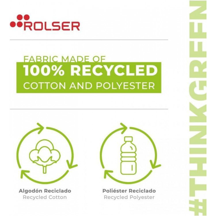 - Тканина 100% перероблена (RECOVE). Поліефірні волокна з ПЕТ-пляшок та перероблена бавовняна тканина.