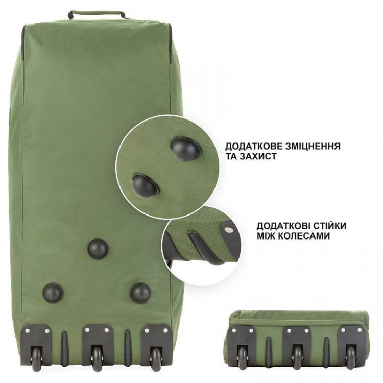 Класична дорожня сумка на колесах TravelZ Wheelbag 100 Liter Green (603095) практична, легка та забезпечує необхідний функціонал для вашої зручності. Сумка виготовлена з міцного водонепроникного поліестеру 600 D. Рекомендоване навантаження до п'ятнадцяти кілограмів. Одне основне відділення на блискавці. Додаткова кишеня на блискавці на лицьовій поверхні сумки. Бічна ручка для переміщення на колесах. Три вбудовані колеса. На дно нанесені захисні гумові ковпачки, а також додаткова захисна гума на тканині. Переносити сумку можливо за допомогою ручок зверху або ременя на плечі. Після використання сумка TravelZ Wheelbag 100 Liter Green (603095) складається в зручний чохол і набуває компактного розміру (37 х 17 х 17 см).