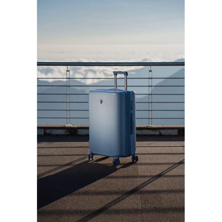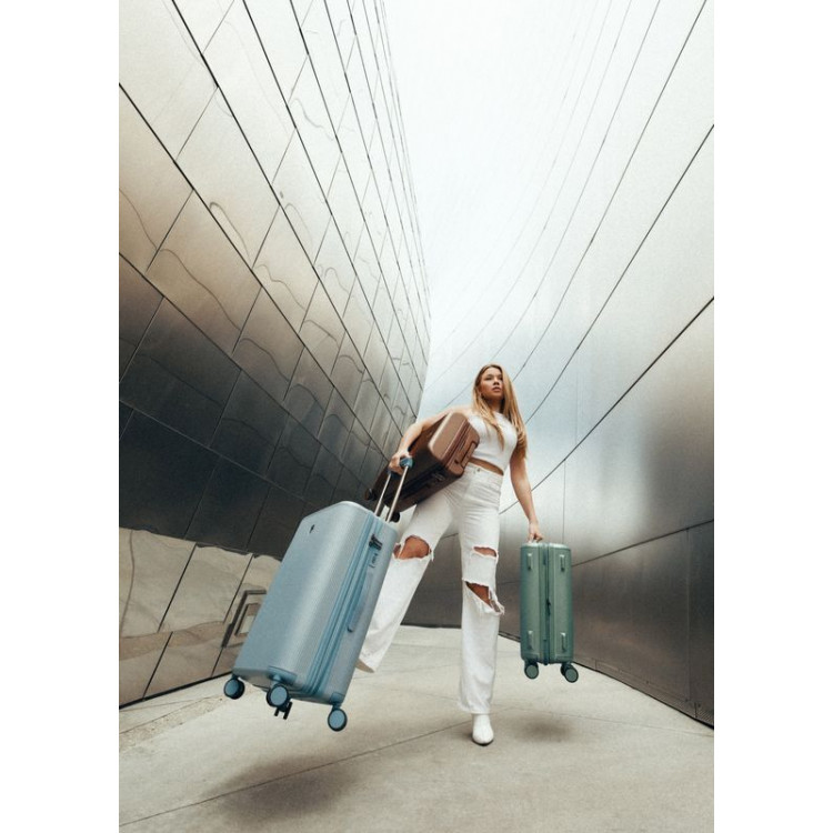 Валіза оснащена чотирма поворотними колесами Spinner з можливістю незалежного розвороту кожного колеса на 360°. Системою передбачено рівномірний перерозподіл навантаження на кожне колесо, що сприяє плавному руху і маневреності валізи, докладаючи при цьому мінімум зусиль.