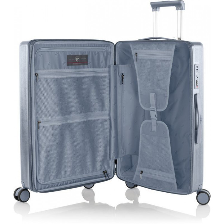 У валізі Earth Tones (M) Glacier Grey (10156-0144-26) приділено максимальну увагу дрібницям. Зовнішні деталі, внутрішня підкладка та фурнітура, а також навіть такі деталі як кріплення коліс, виготовлені у теплих кольорах, які дизайнери Heys розробляли надихаючись природними тонами, яким і присвячена дана серія валіз.